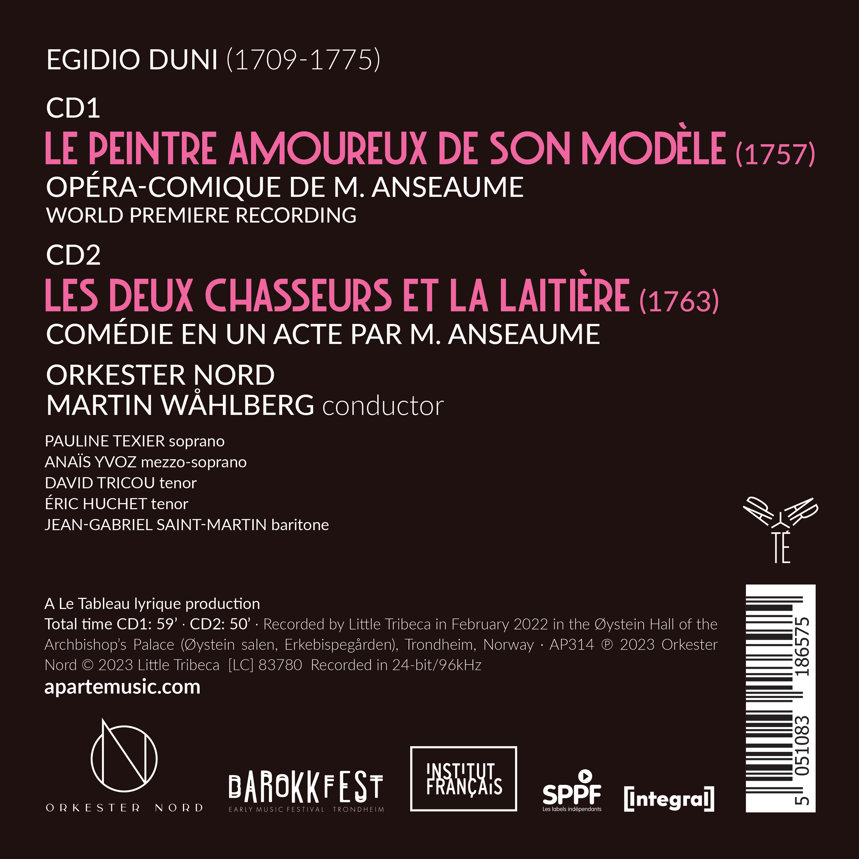 Do you know Duni? Martin Wåhlberg and Orkester Nord take you on a journey of discovery of the father of opéra-comique through two of his emblematic works: Les deux chasseurs et la laitière, and Le peintre amoureux de son modèle, recorded here for the first time.